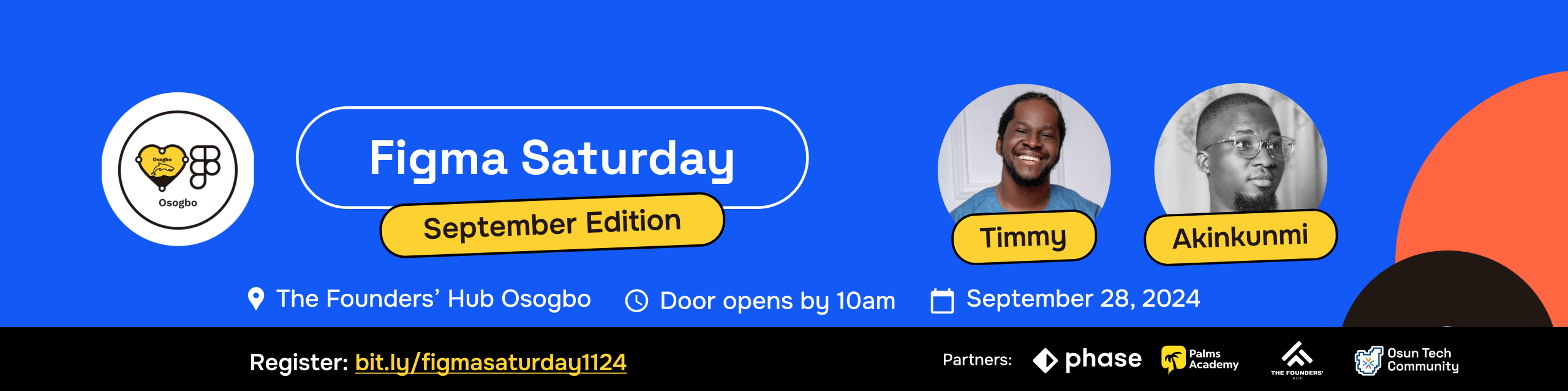 Figma Saturday | September 2024 Edition Sep 28, 2024, 9:00 AM – 2:00 PM (UTC)