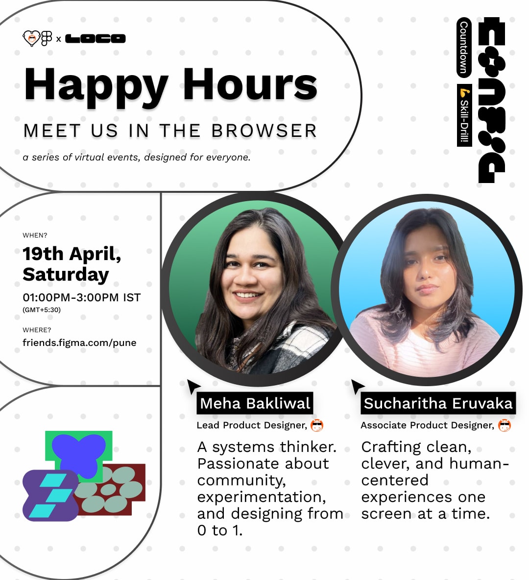 Meha Bakliwal - Lead Product Designer, Loco. A systems thinker with a knack for turning complex product flows into intuitive, engaging experiences. Passionate about community, experimentation, and designing from 0 to 1. Sucharitha Eruvaka - Associate Product designer, Loco. Crafting clean, clever, and human-centered experiences one screen at a time. About Loco A game-streaming platform where millions of viewers watch and engage with their favorite streamers in real time. From live gameplay to interactive features, Loco is redefining how communities come together over gaming.