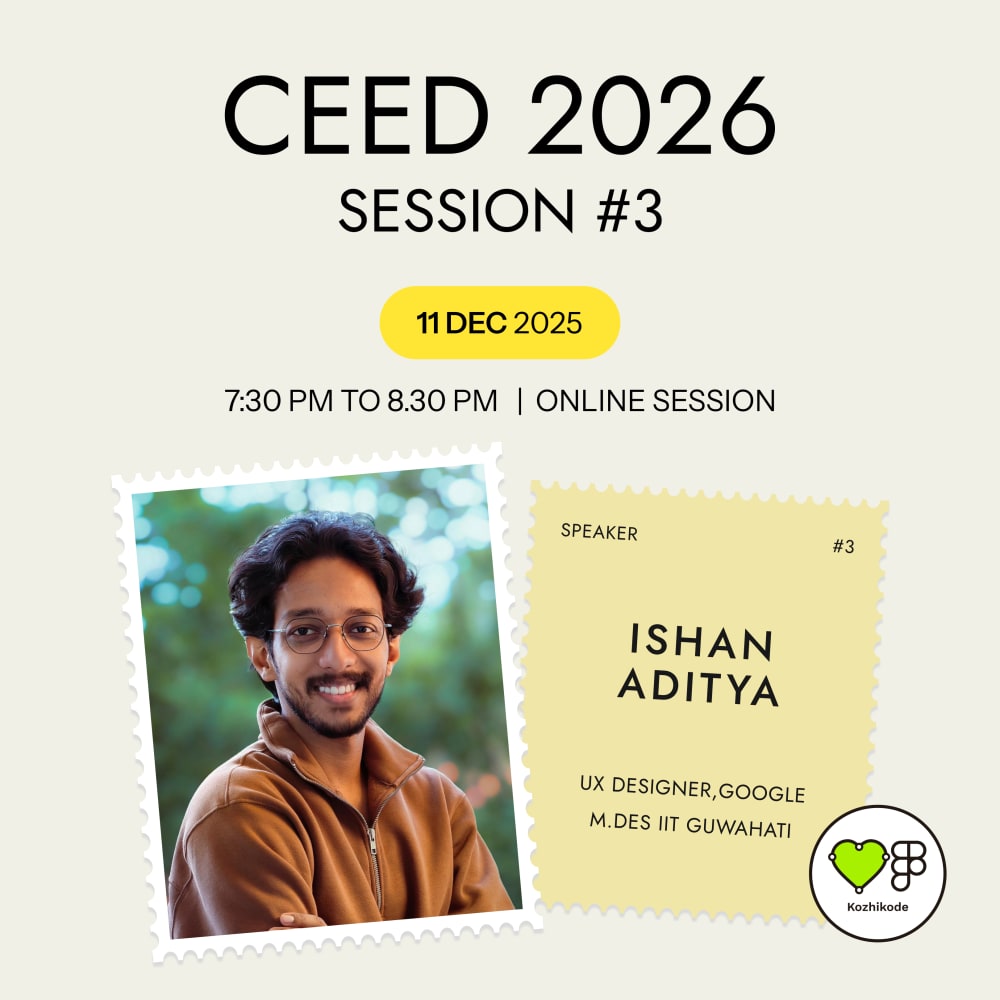 Design Community in Kozhikode, Kerala, India ; where we gather around to get excited about the possibilities and horizons that designers could pull off. Whether you're a student, early-career professional, or a seasoned expert, everyone is invited to be part of this creative journey and help us in #Redesigning_Kozhikode